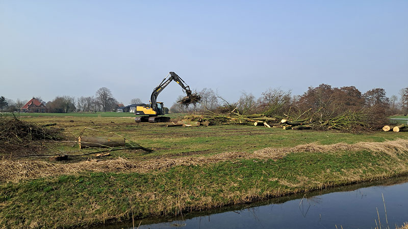 Aan de noordzijde van de begraafplaats stonden een 7-tal bomen. De wortels zorgden voor schade aan het grindpad en als ze zouden doorgroeien kunnen ze schade veroorzaken aan de graven en grafstenen. Om verdere schade te voorkomen zijn de bomen gerooid. Daarna het rooien zullen hier nieuwe bomen worden geplant. We kiezen dan voor leilindes. Dit zijn dezelfde bomen als die voor in het grasveld staan. De gerooide bomen daarna in het weiland bij het Leechje neergelegd. We zoeken nog een aantal vrijwilligers met een kettingzaag die ons willen helpen de bomen in stukken te zagen. Deze vrijwilligers mogen het gezaagde hout meenemen. Aanmelden kan bij Jan Mennema, email: j.mennema@hetnet.nl of 06-53941793.