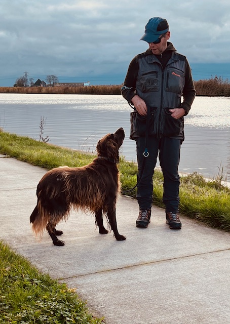 Voor de meeste mensen in Dronryp ben ik de man met pet en donkere zonnebril, die elke dag met zijn bruine hond en een zak vol hondenkoekjes door het dorp wandelt.