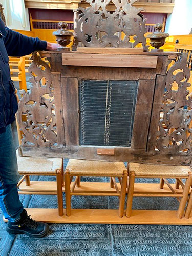 Volledig aan het zicht onttrokken dus. Geert Venema van het Skilpaad wees ons onlangs op de extra historische waarde van één van de aankondigingsborden. Bij niets en niemand anders meer in beeld. Venema is nog bezig met aanvullend onderzoek, heeft een nieuwe vervangende lei geplaatst en gezorgd voor een prominente plek van de oude leisteen in de Alde Wite. Deze bijzondere lei blijft niet langer aan het zicht onttrokken.